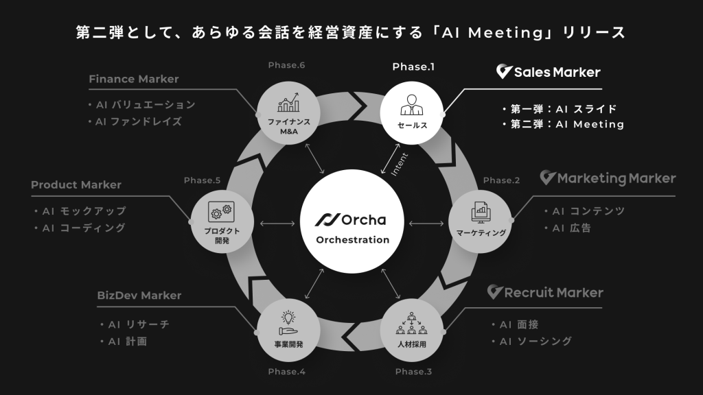 株式会社Sales Marker(本社:東京都渋谷区、代表取締役 CEO:小笠原 羽恭、以下:当社、日本語名:セールスマーカー)は、マルチAIエージェント「Orcha(オルカ)」の第二弾機能として、「AI Meeting」を正式にリリースしたことをお知らせいたします。